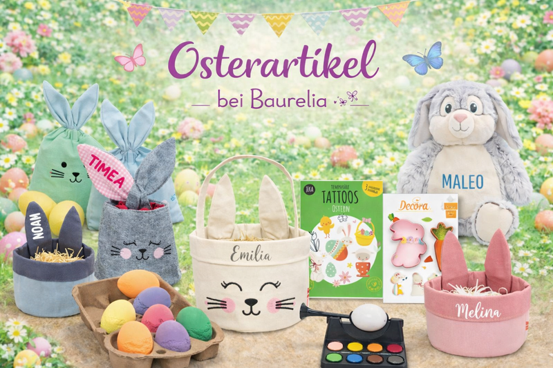Entdecke liebevoll gestaltete Osterartikel für Kinder bei Baurelia – perfekt zum Basteln, Befüllen, Dekorieren und Verschenken.