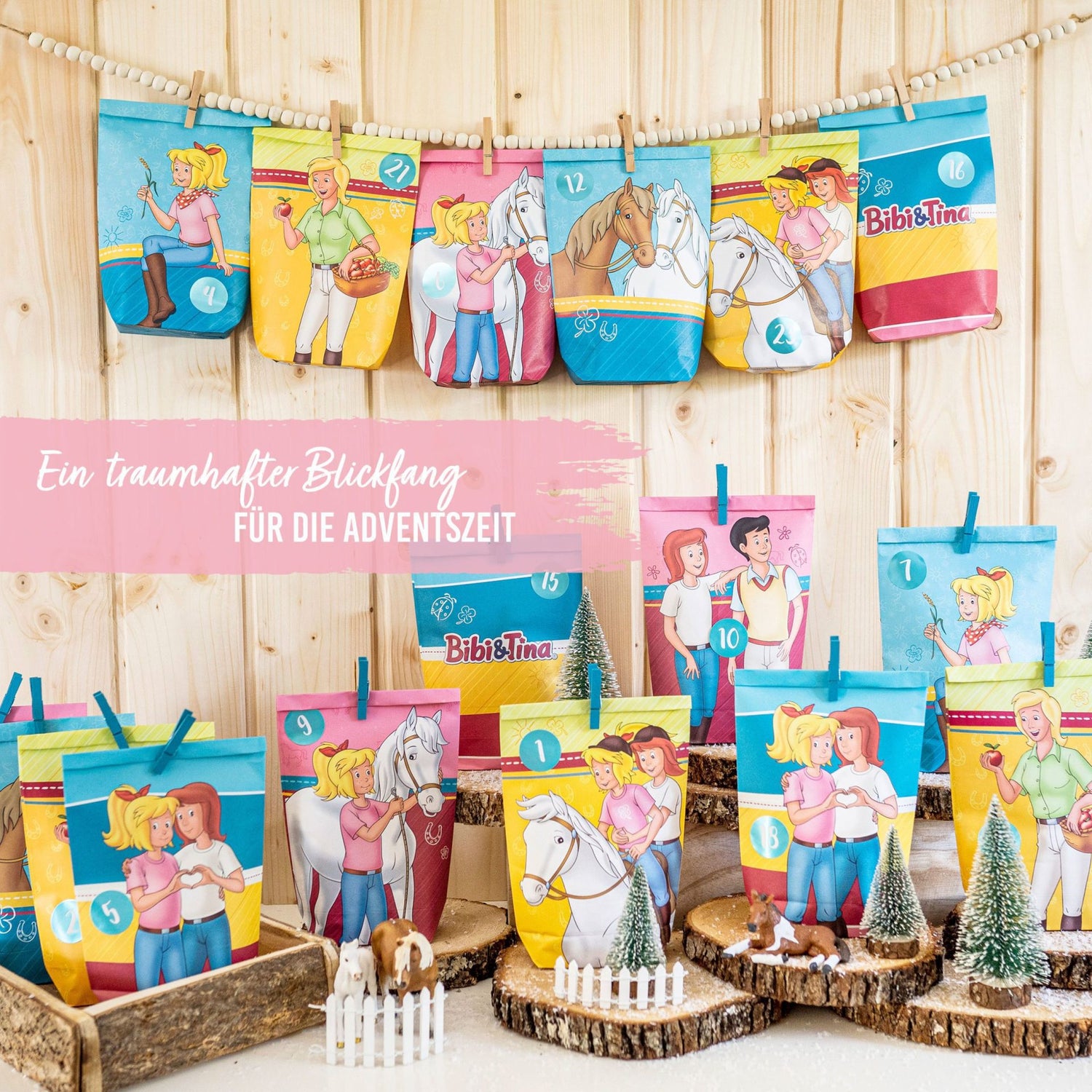 ☆ 24 bunte Kraftpapiertüten – hochwertig bedruckt | 14x22cm | Bibi & Tina