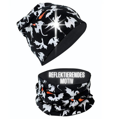 Kinder Beanie Mütze & Loop Schal Reflektierend Drache