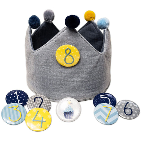 Geburtstagskrone Musselin mit Zahlen Button Blaugrau