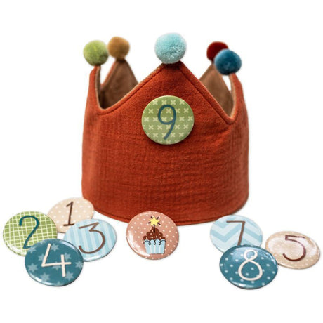 Geburtstagskrone Musselin mit Zahlen Button Rotbraun