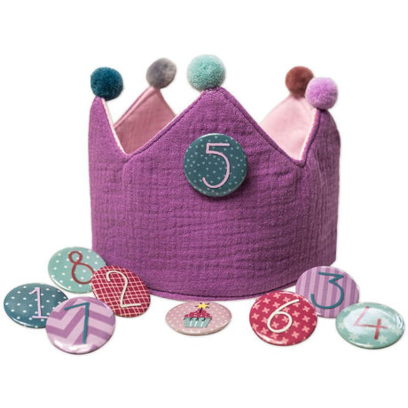Geburtstagskrone Musselin mit Zahlen Button Lila