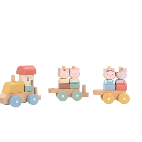 Holz Eisenbahn mit Steckformen Zootiere Pastell