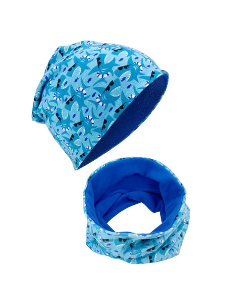 Kinder Winter Mütze & Loop Schal Haifisch