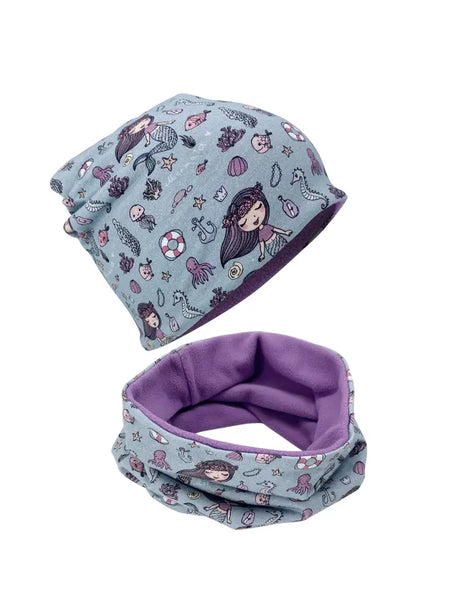 Kinder Winter Mütze & Loop Schal Meerjungfrau
