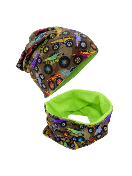 Kinder Winter Mütze & Loop Schal Monstertruck