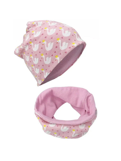 Kinder Winter Mütze & Loop Schal Schwan