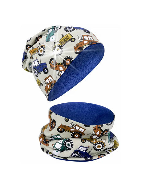 Kinder Winter Mütze & Loop Schal Reflektierend Traktor