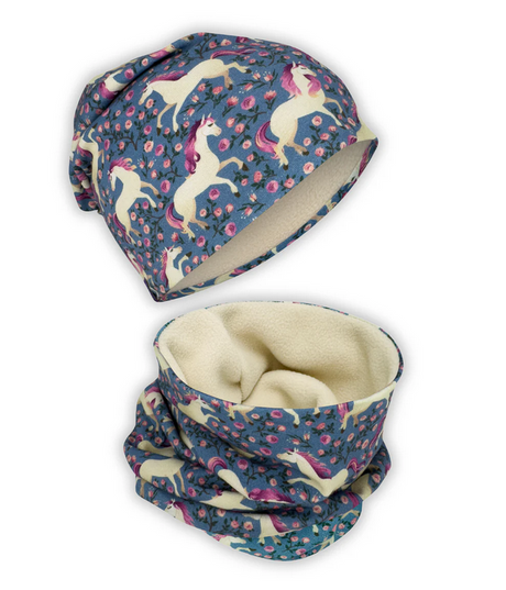Kinder Winter Mütze & Loop Schal Pferd