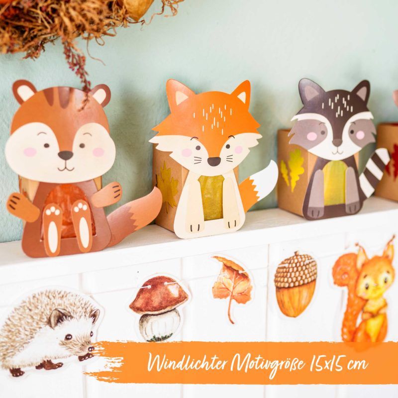 Waldtiere DEKO SET FÜR DEN HERBST: Dieses süsse Komplettset enthält 8 Tiere des Waldes als gemütliches Windlicht. Wir empfehlen aus Sicherheitsgründen ein elektrisches Teelicht.