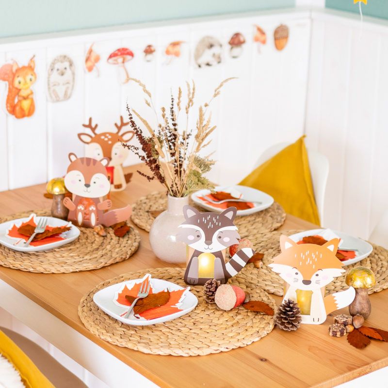 KINDGERECHT DESIGNT: Süsse Motive wie Rentier, Waschbär, Fuchs & Eichhörnchen verbreiten direkt eine gemütliche Herbststimmung.