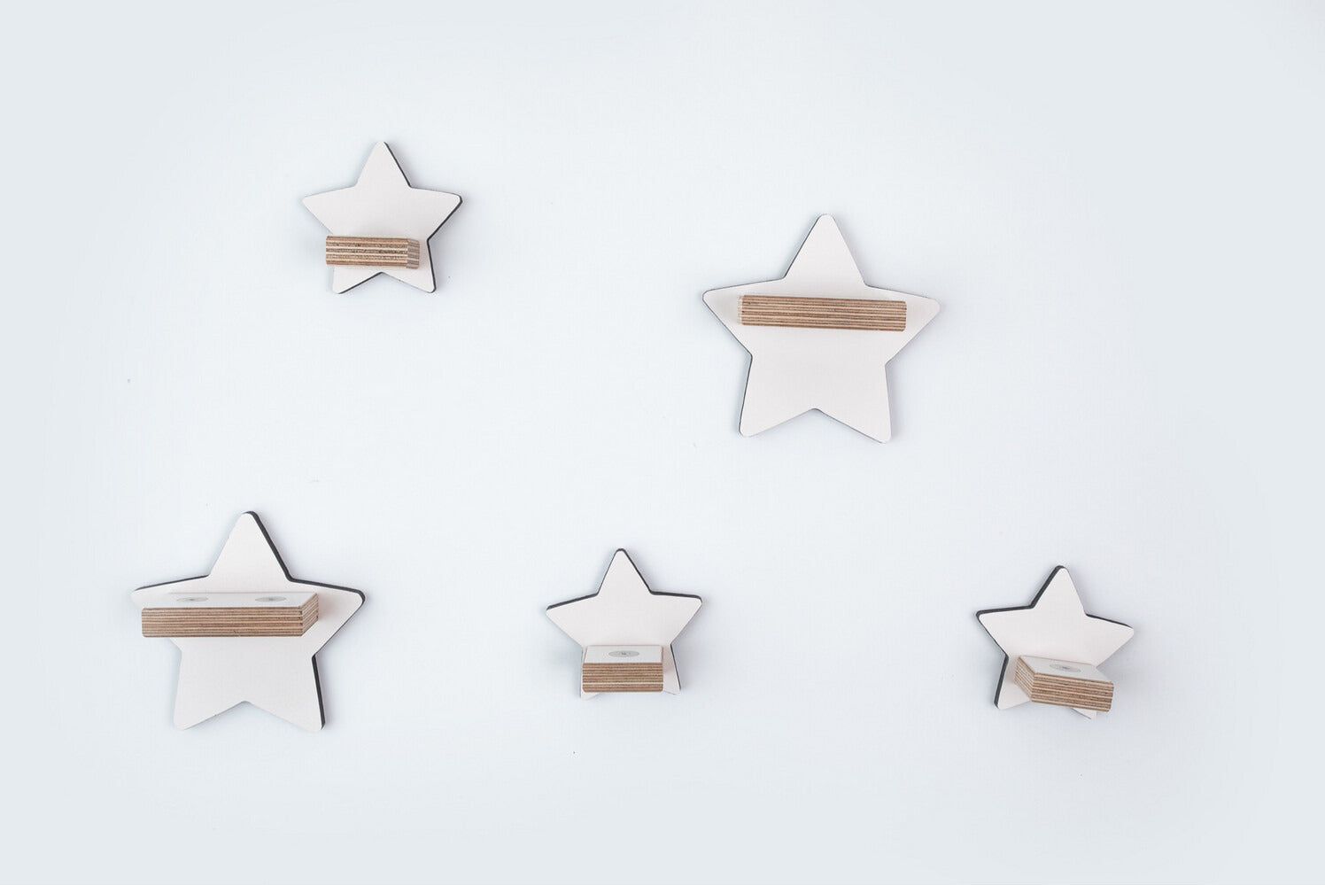 Das Set der kleinen Sterne, bestehend aus 5 Sternen, ist die neuste Kreation für eure Sammelfiguren und liebevoll gestaltete Kinderzimmer. Exklusive Ehrenplätze für ganz besondere Figuren. Sie sind die ideale Erweiterung zu euren bereits vorhandenen Regalen oder bestimmt auch einzeln der absolute Hingucker.