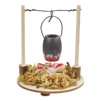 Wichtelzubehör Feuerstelle mit Kochtopf beleuchtet