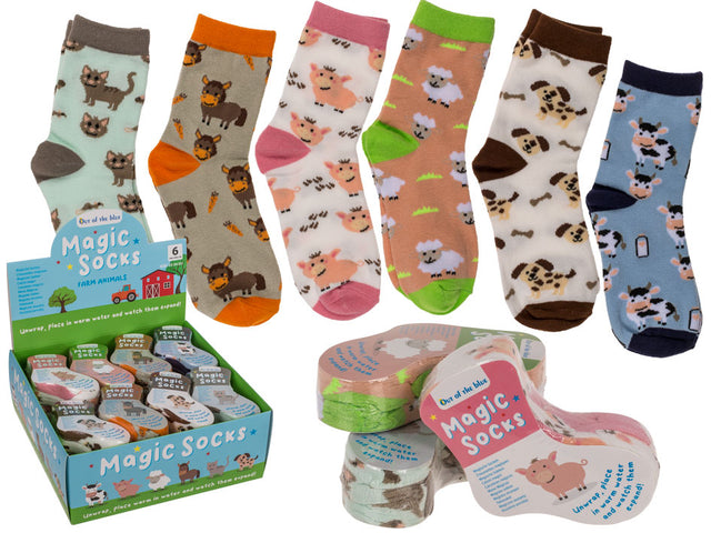 Zaubersocken mit lustigen, bunten Motiven. Ins Wasser getaucht, entfaltet sich ein kuscheliges Paar Socken. Die Socken sind dank Einheitsgröße passend für alle Kinderfüße. Feste, flauschige Qualität. 92% Baumwolle + 3% Elasthan.