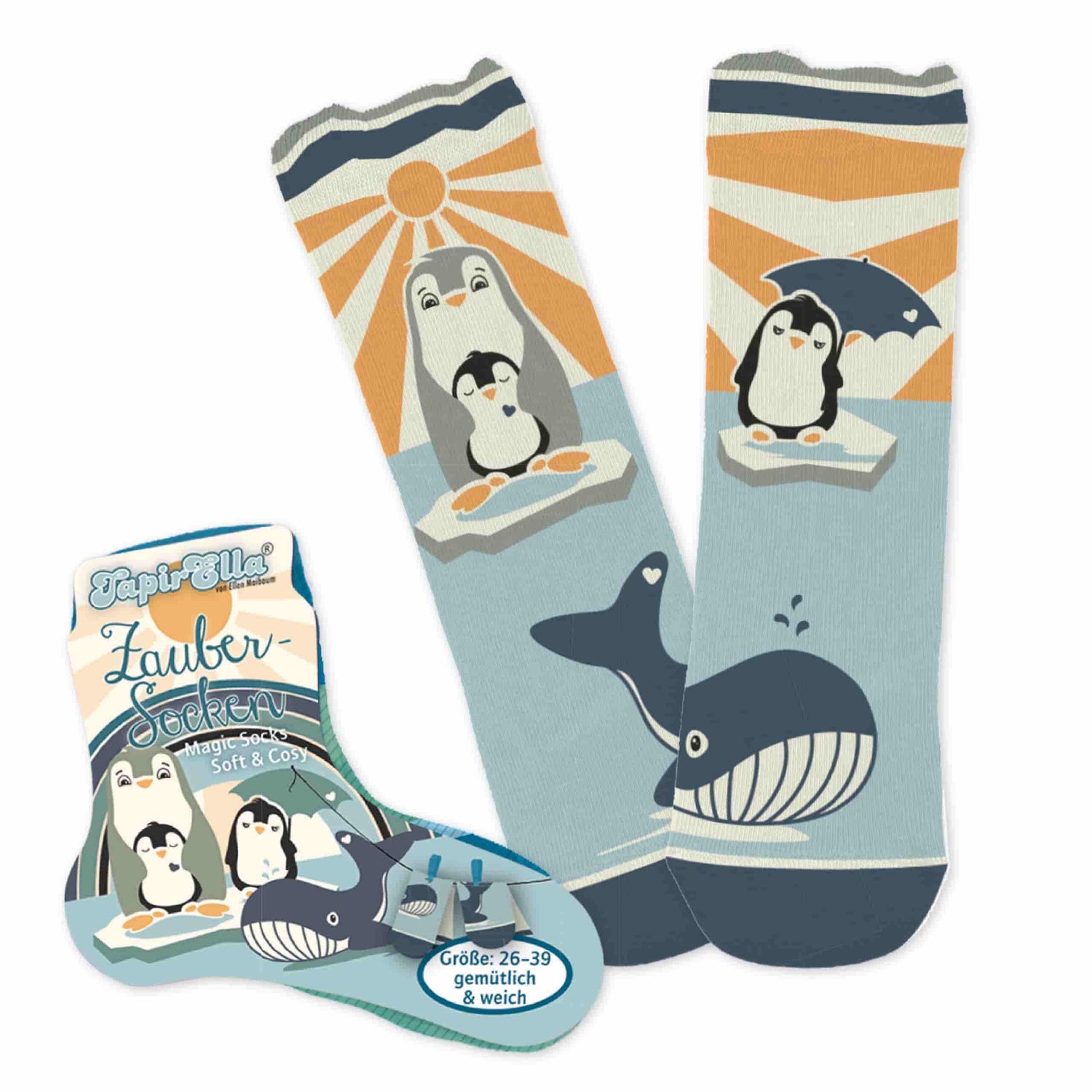 Zaubersocken mit lustigen, bunten Motiven. Ins Wasser getaucht, entfaltet sich ein kuscheliges Paar Socken. Die Socken sind dank Einheitsgröße passend für alle Kinderfüße. Feste, flauschige Qualität. 80% Baumwolle + 17% Polyamid + 3% Elasthan.