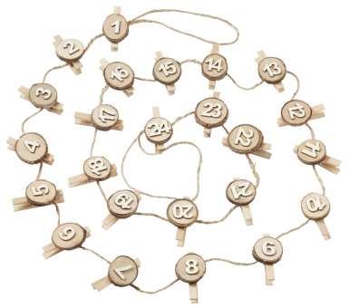 Verschiedene Designs mit je 24 Adventskalender Zahlen mit Holzklammern– zum Basteln und Dekorieren deines ganz persönlichen Adventskalenders.