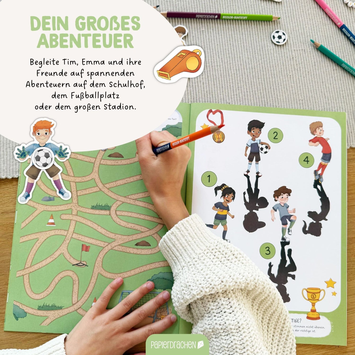Entdecke unsere vielseitigen 4-in-1 Stickerhefte – die perfekte Mischung aus Spass und Lernen für kleine Entdecker! Jedes Heft ist liebevoll gestaltet und lädt zum Erkunden, Bekleben, Ausmalen und Spielen ein. Ob in den faszinierenden Tiefen der Unterwasserwelt, bei den niedlichen Wintertieren oder im aufregenden Fussball-Universum – jedes Thema eröffnet eine eigene, spannende Welt. Mit 24 Seiten im DIN A4-Format und 8 verschiedenen Themenwelten.