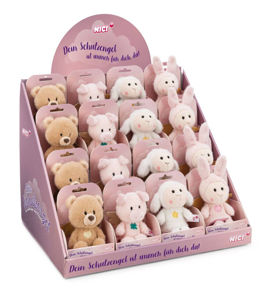Dein NICI Schutzengel ist immer für dich da! Die NICI Schutzengel Schaf, Hase, Bär oder Schwein stehen für Schutz und Güte und bringen als Geschenk Glück und Segen für Gross und Klein. Mit ihrer handlichen Grösse sind Deine Schutzengel von NICI die perfekten Begleiter für den Alltag, auf Reisen und zum Trösten in schweren Zeiten. Die hochwertigen Plüschtiere, verpackt in niedlichen Geschenkboxen, warten in einem zauberhaften Wolkendisplay auf ihre menschlichen Schützlinge.