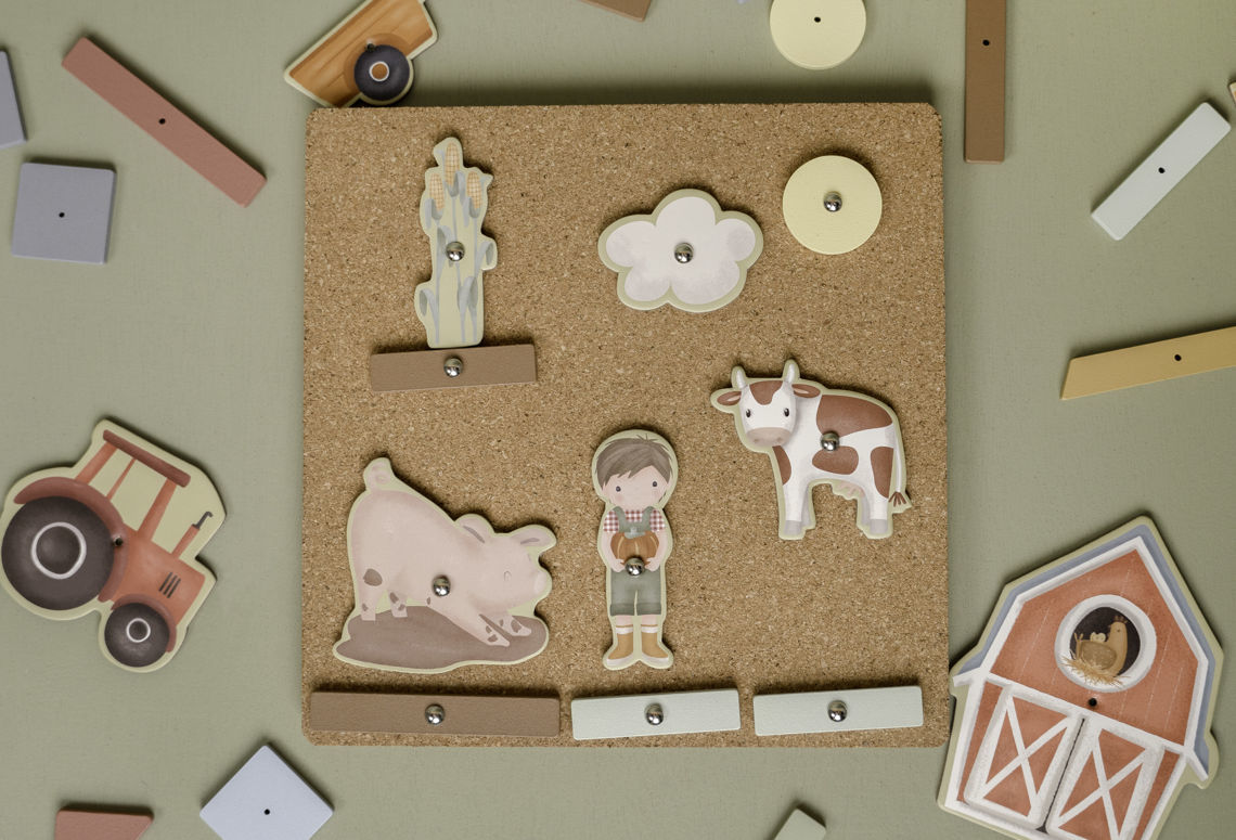 Mit diesem Hammer- und Nagelset aus der Little Farm Kollektion können Kinder ab 3 Jahren fröhlich hämmern. Das Set enthält eine Kombination aus hölzernen geometrischen Formen und illustrierten Figuren aus hochwertigem Karton. Kinder können ihrer Fantasie freien Lauf lassen und die schönsten Fantasieszenen kreieren.