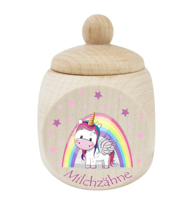 Die Milchzahndose kann mit Name oder nach Wunsch personalisiert/ bedruckt werden.