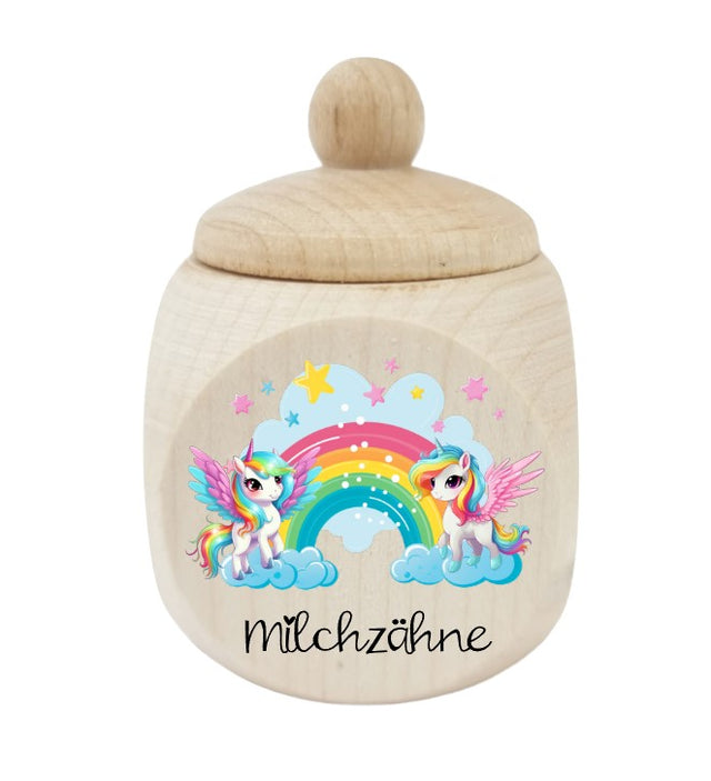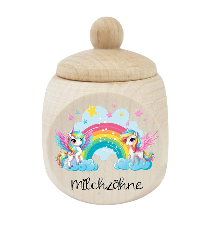 Die Milchzahndose kann mit Name oder nach Wunsch personalisiert/ bedruckt werden.