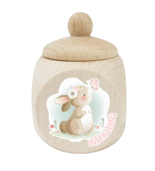 Die Milchzahndose kann mit Name oder nach Wunsch personalisiert/ bedruckt werden.