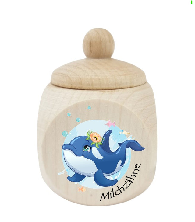 Die Milchzahndose kann mit Name oder nach Wunsch personalisiert/ bedruckt werden.