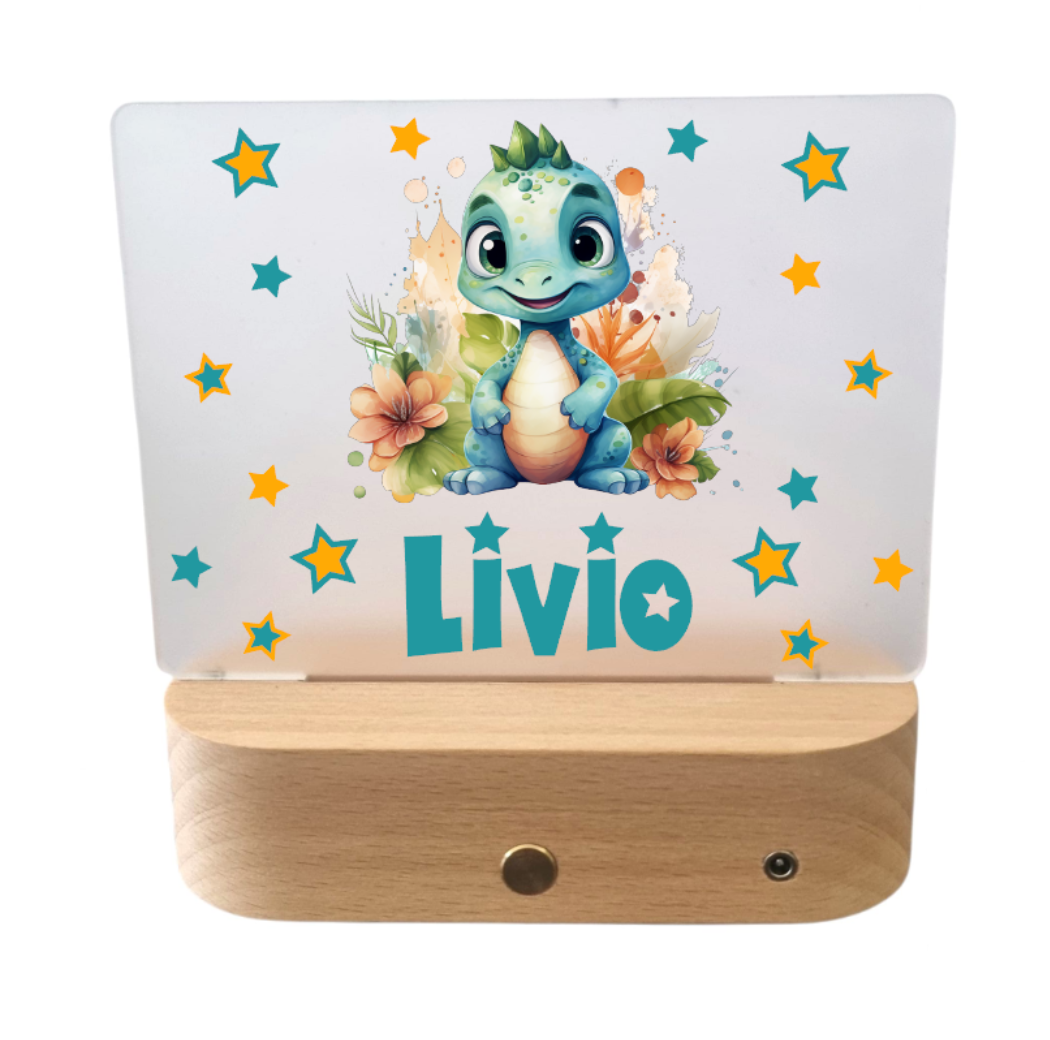 Personalisiertes LED-Nachtlicht mit Holzsockel - Sanftes Licht für im Kinderzimmer