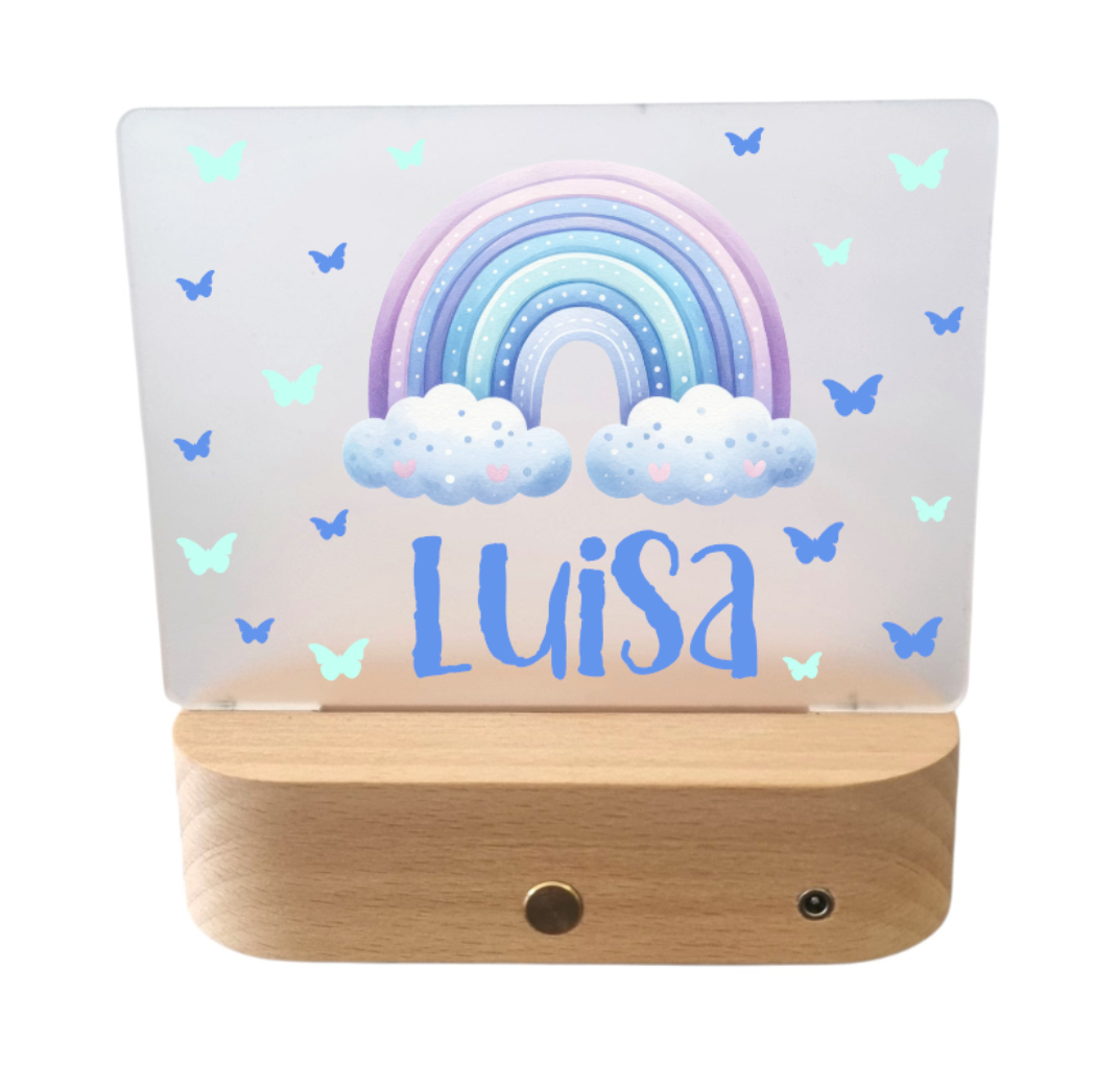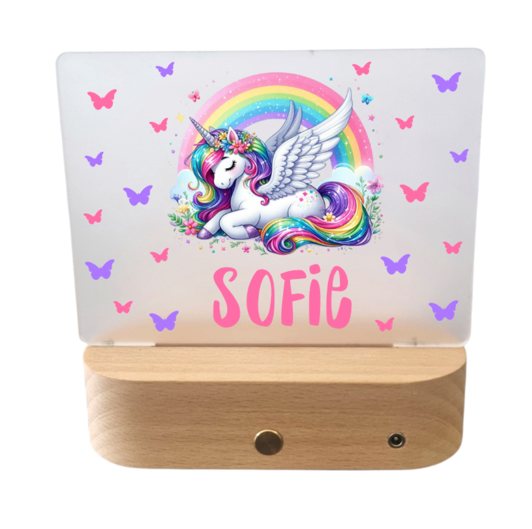 Das Nachtlicht mit Akku wiederaufladbar für Kinder kann mit Name oder nach Wunsch mit UV-DRUCK bedruckt / personalisiert werden.