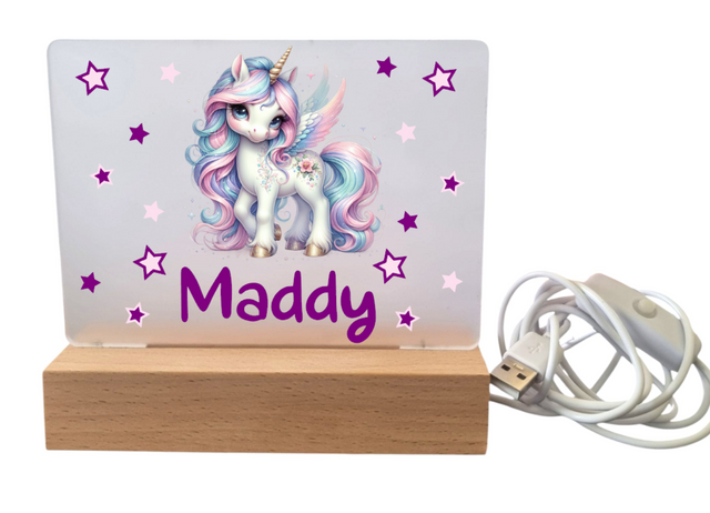 Das Nachtlicht aus Holz und Plexiglas für Kinder kann mit Name oder nach Wunsch mit UV-DRUCK bedruckt / personalisiert werden.
