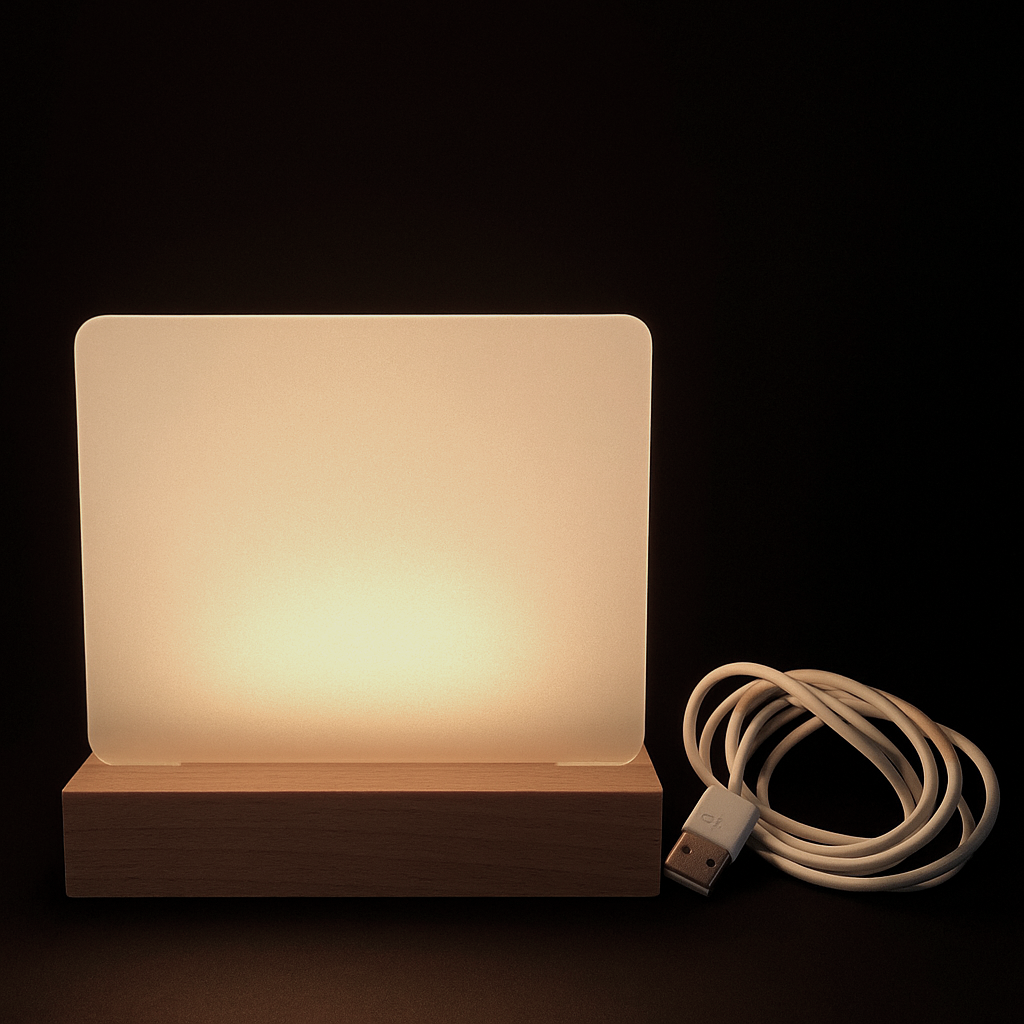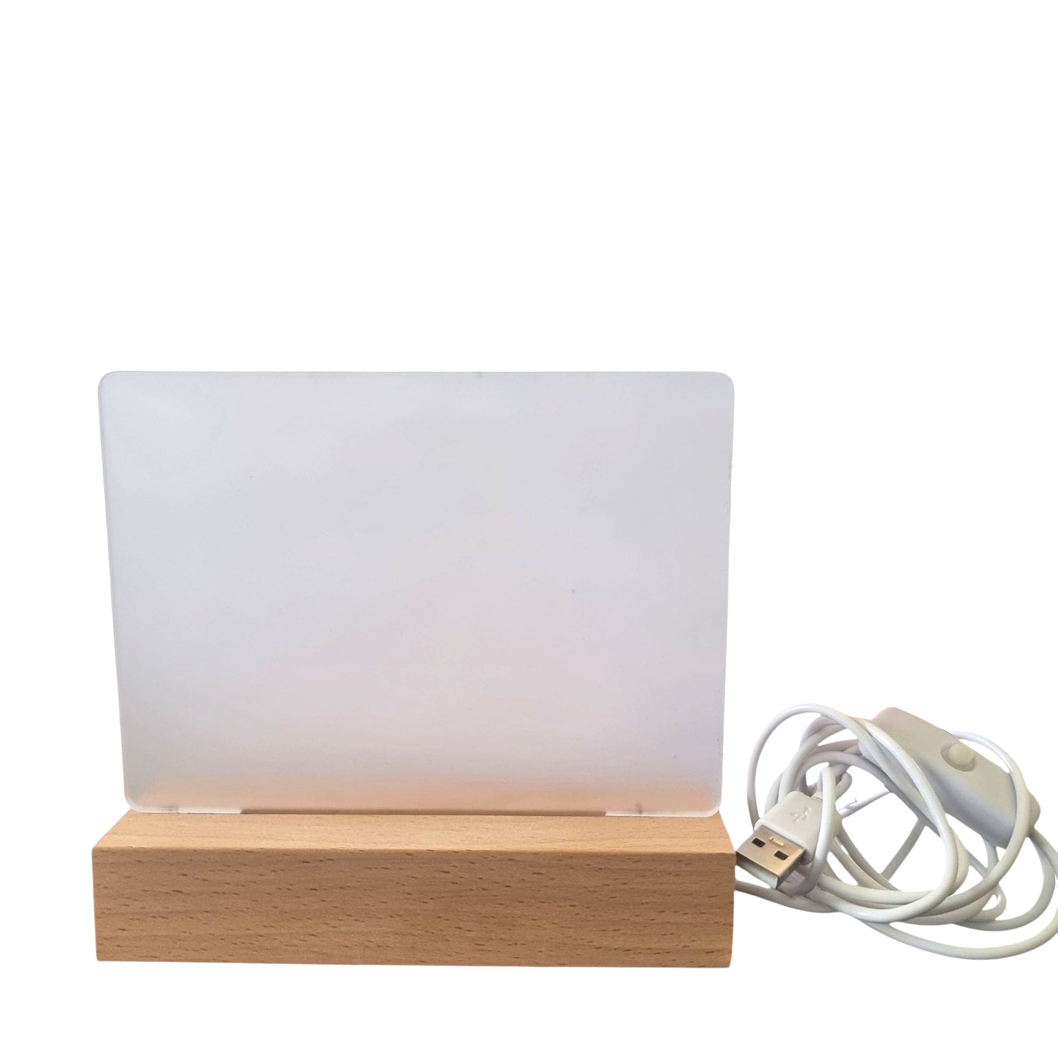 ☆ Lieferumfang: USB Kabel mit Schalter, Holzsockel und Plexiglasform Rechteck - OHNE STECKDOSENADAPTER