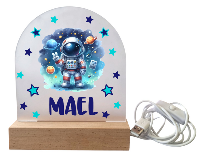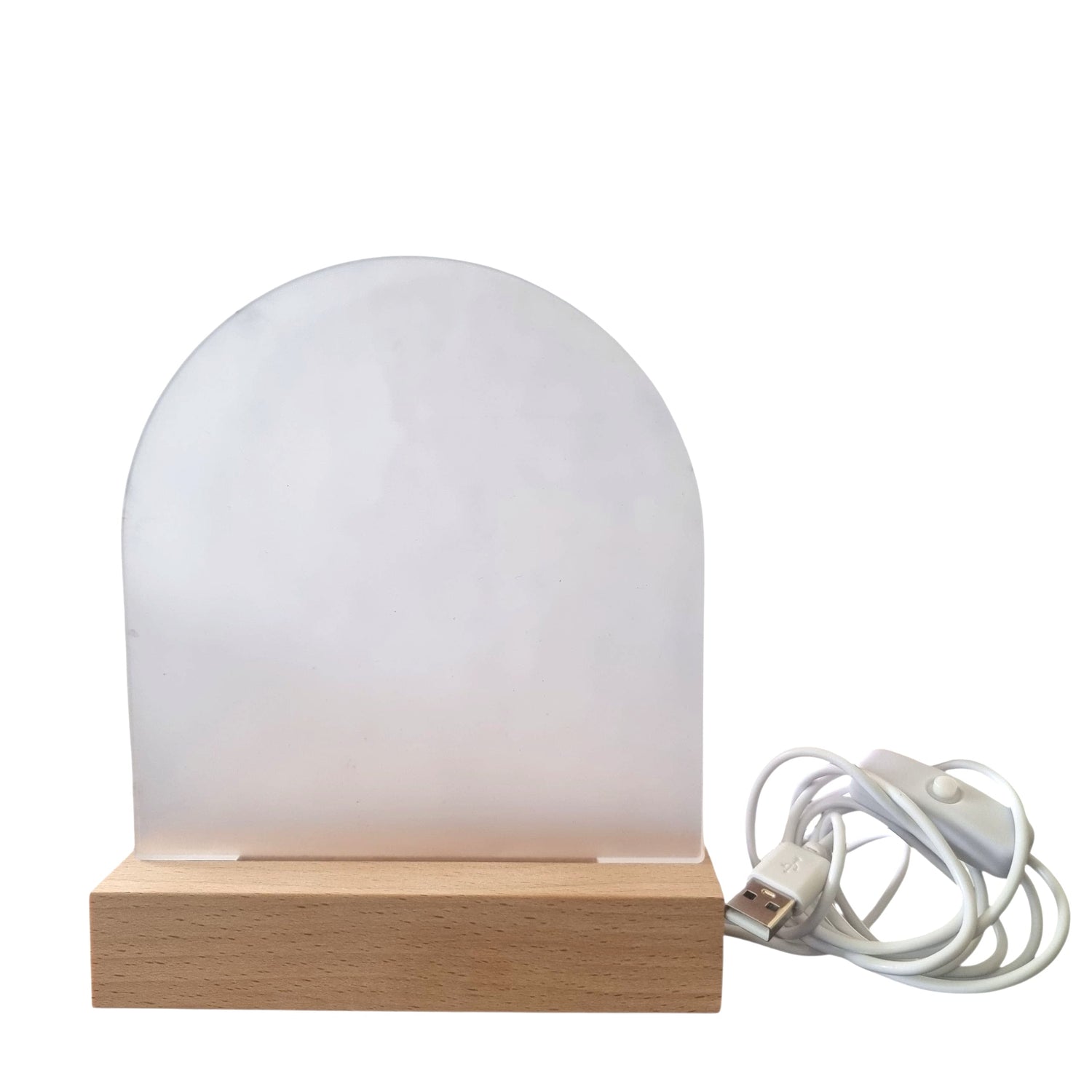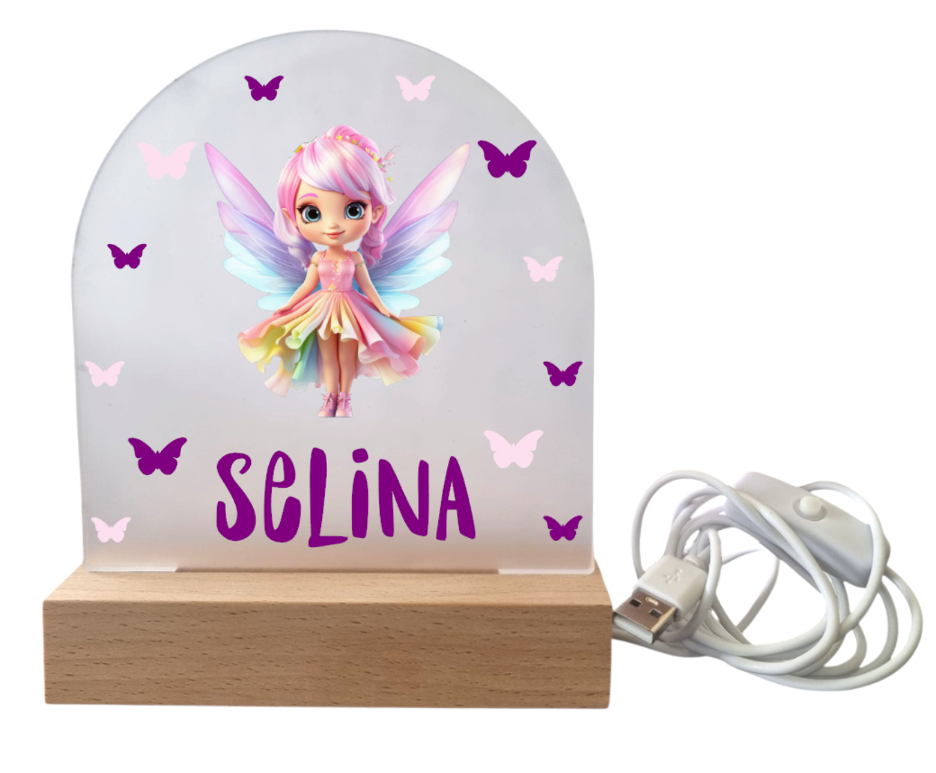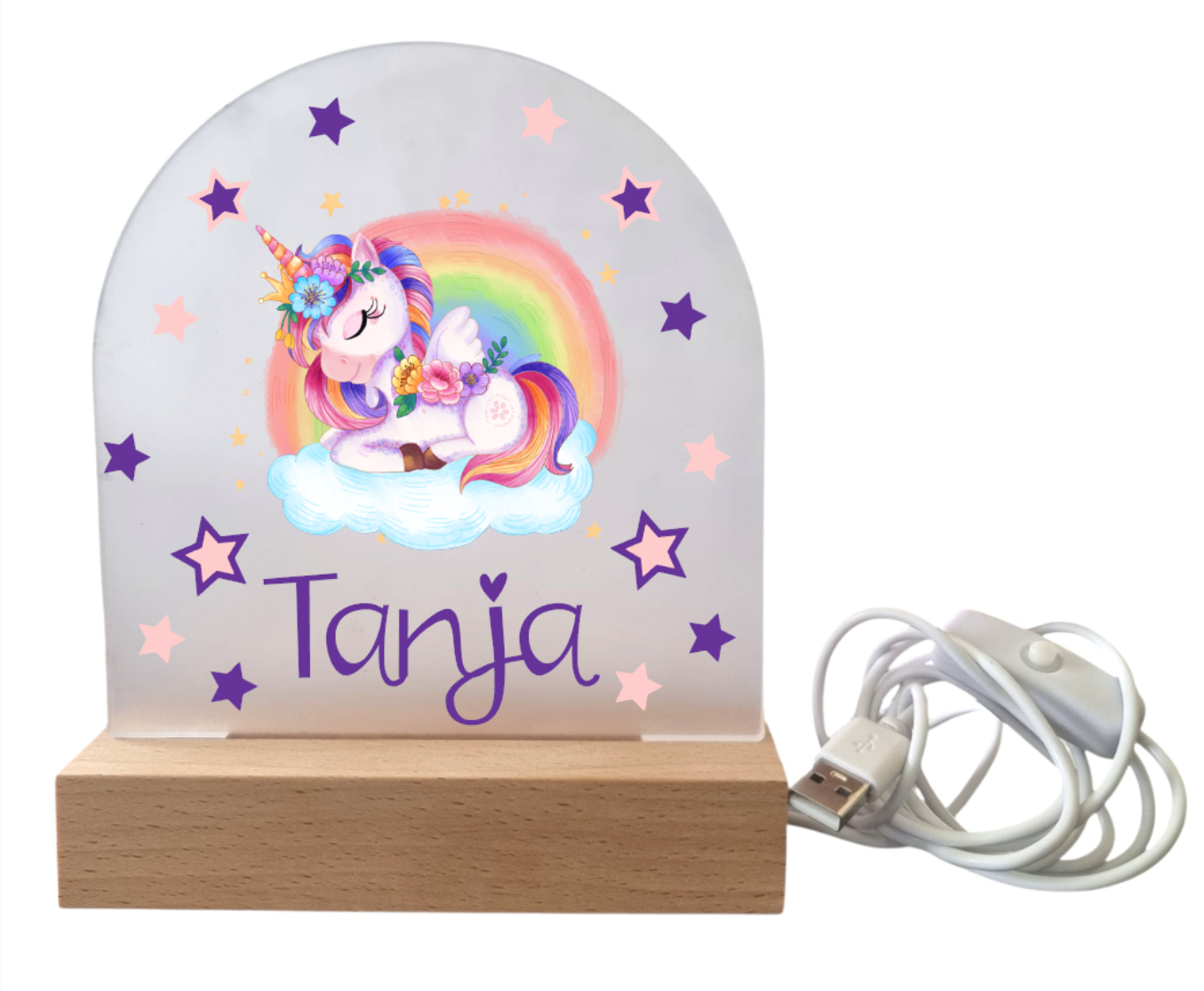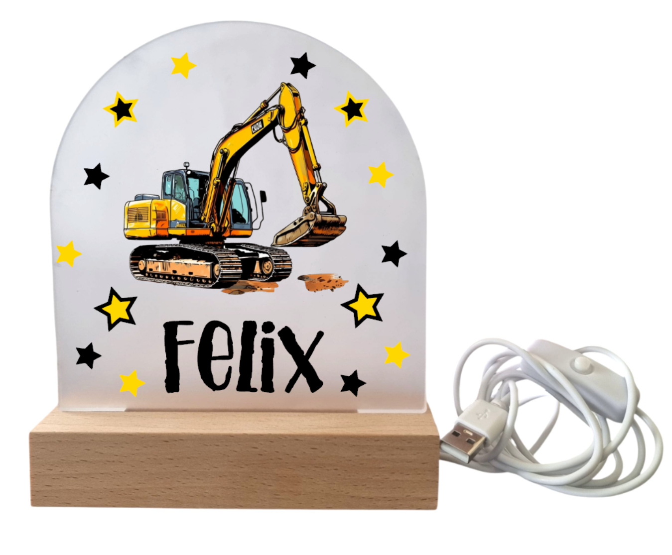 Das Nachtlicht aus Holz und Plexiglas für Kinder kann mit Name oder nach Wunsch mit UV-DRUCK bedruckt / personalisiert werden.