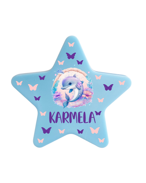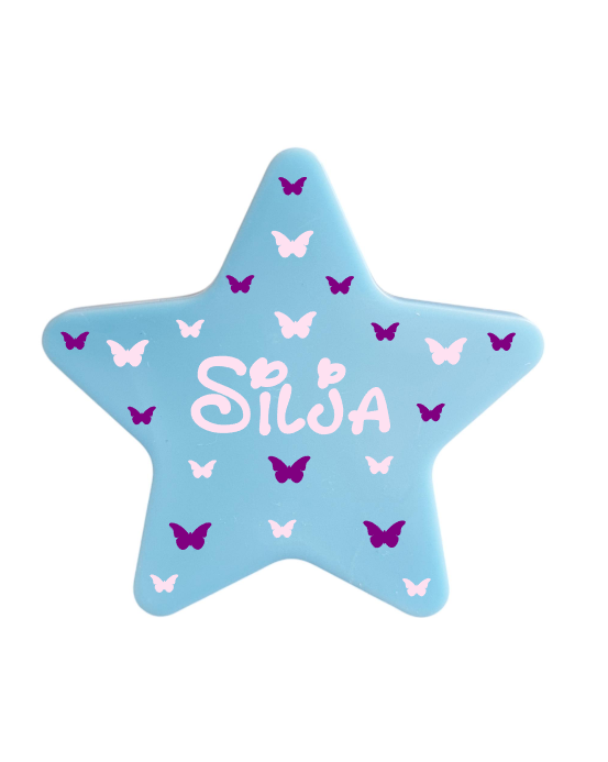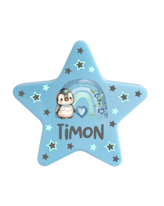 Das Nachtlicht Stern für in die Steckdose kann mit Name oder nach Wunsch mit UV-DRUCK bedruckt / personalisiert werden.
