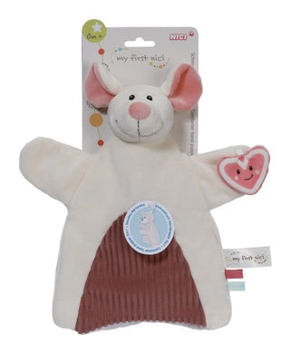 Kuscheln, spielen, entdecken - die My First NICI Maus ist Babys erste Freundin für alle Abenteuer! Das supersüsse, cremefarbene Schmusetuch mit rosa Akzenten ist nicht nur flauschig weich und kuschelig, sondern auch der perfekte Begleiter für die ersten Lebensjahre. Aus hochwertigem NICI Plüsch gefertigt, lädt das Mäuschen Schmusetuch zum Nuckeln, Greifen, Kuscheln und Spielen ein. Der Materialmix aus glattem und geripptem Plüsch macht das Schmusetuch zu einem unverzichtbaren haptischen Erlebnis. Doch damit nicht genug! Im Handumdrehen verwandelt sich das Mäuse Schmusetuch in eine niedliche Handpuppe. Ein rosa Herz mit freundlichem Gesicht, das als 2D-Plüschelement an der Hand der Handpuppe befestigt ist, sorgt für noch mehr Spass und weckt die Aufmerksamkeit des Babys. Das My First Nici 2in1 Maus Schmusetuch und Handpuppe ist ein treuer Begleiter und schafft Erinnerungen, die ein Leben lang halten! Ein zauberhaftes Geschenk zur Geburt, Taufe oder für den nächsten Besuch des neuen Erdenbürgers.