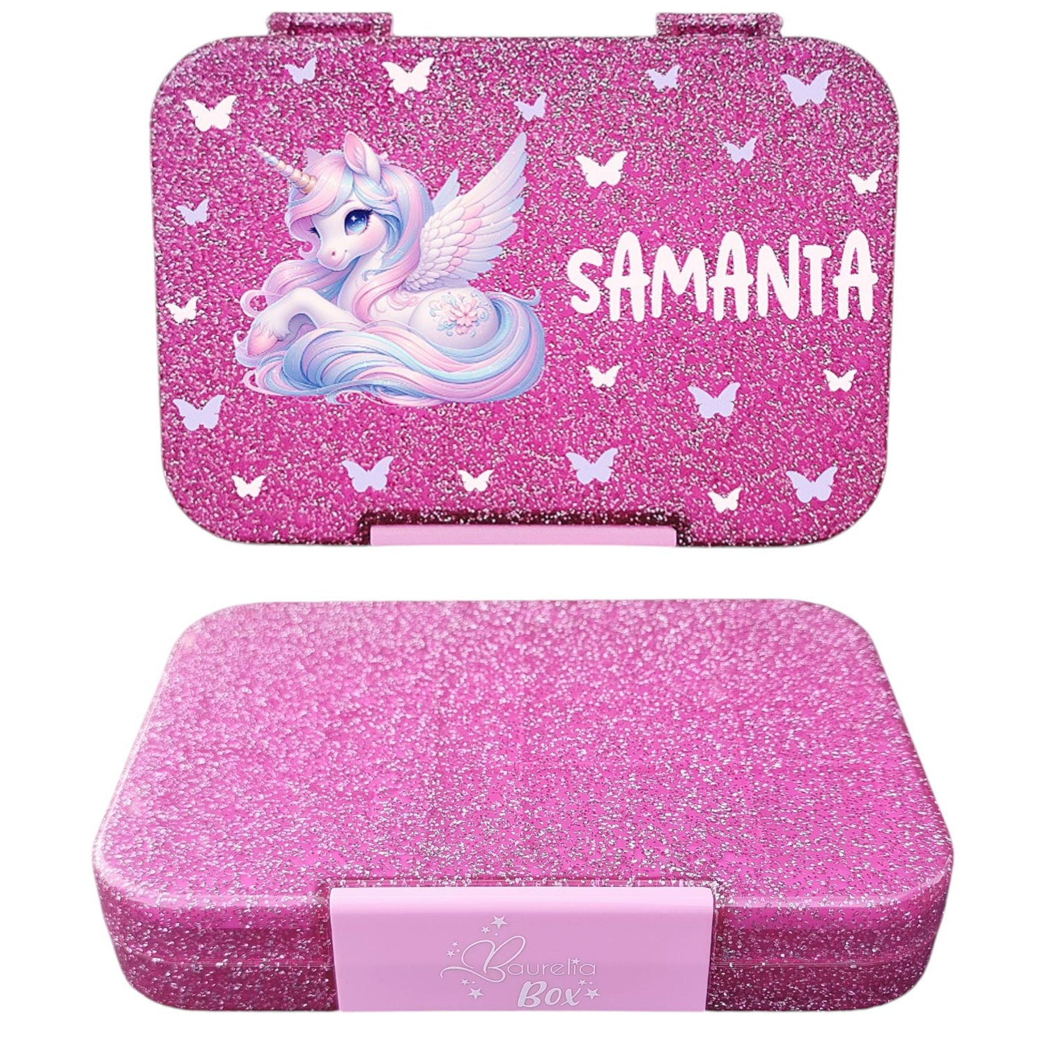 Glitzer Znünibox Lunchbox für Kinder – Ideal für Kindergarten, Schule & Ausflüge.