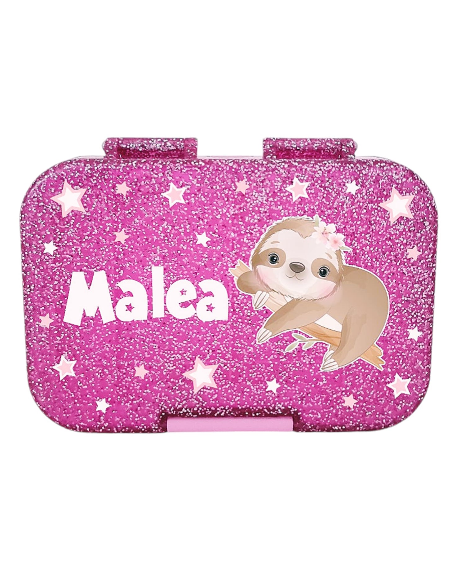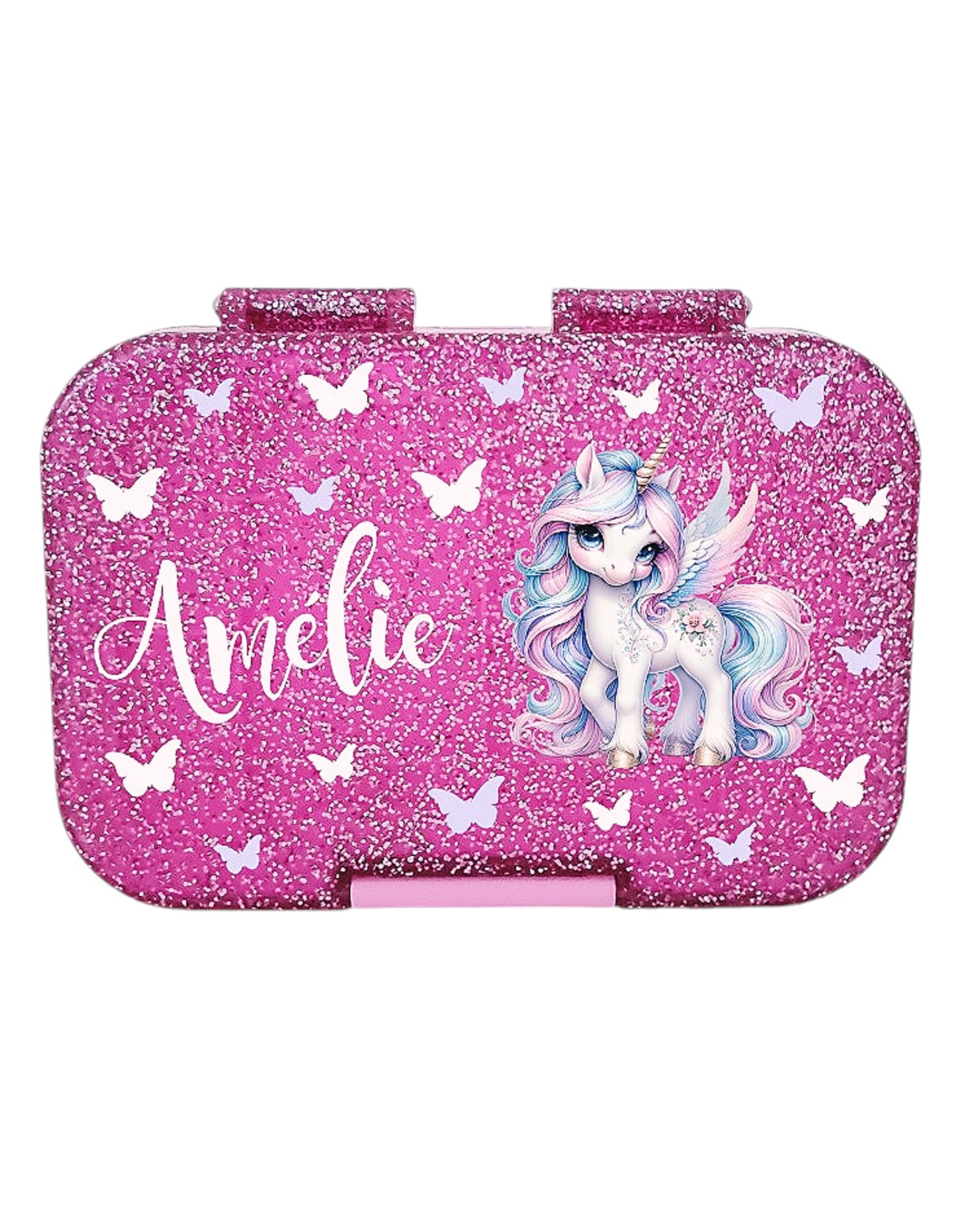 Znünibox mit Glitzer Pink – Auslaufsicher, personalisierbar & robust für Kinder.