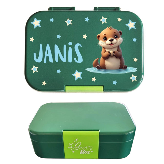 Baurelia Box Mini Dunkelgrün– personalisierbare, leichte und auslaufsichere Znünibox für Kinder.