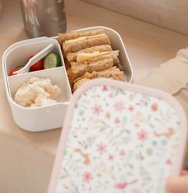 Kleine Esser, großer Appetit. In dieser Mepal Znünibox Lunchbox für Kinder nehmen Sie mühelos vier Butterbrote mit, oder Sie entscheiden sich für zusätzliche Abwechslung mit dem herausnehmbaren Bentobehälter und der passenden Gabel. Ideal für frisches Obst, einen Snack oder etwas Herzhaftes zwischendurch. Die separaten Fächer halten alles schön getrennt und frisch. Ob es nun ein Schultag oder ein Ausflug ist, die Lunchbox ist robust, leicht zu öffnen und für Kinderhände geeignet. Nach Gebrauch kann alles einfach in die Spülmaschine.